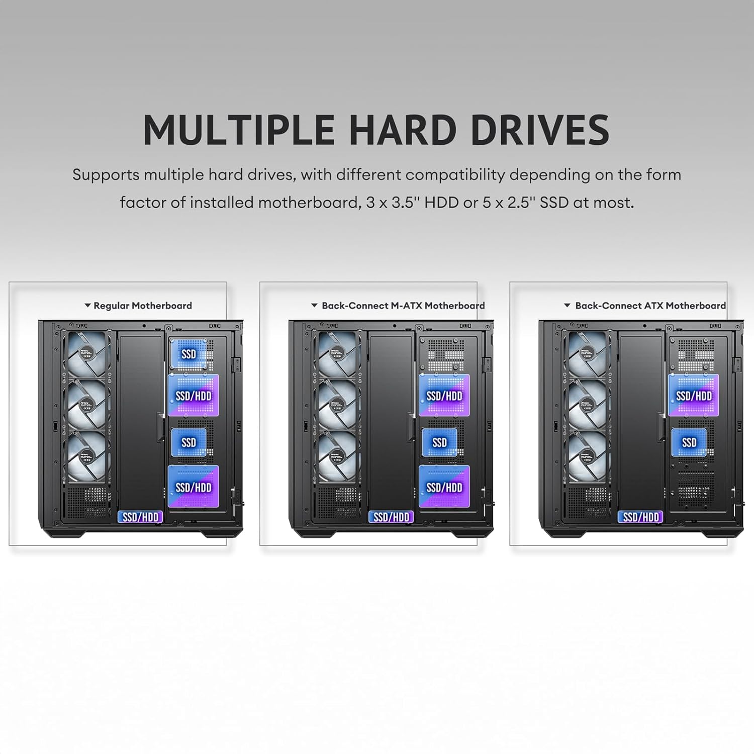 | 2.5″ | Normal M/B: 2, M-ATX Back Connect: 1, ATX Back Connect: 1 |