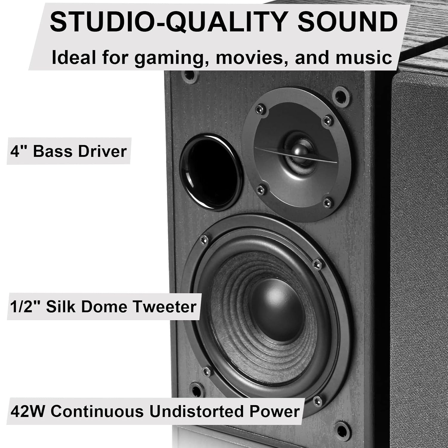 - Class D amplifier with 4inch bass drivers and 13mm silk dome tweeters