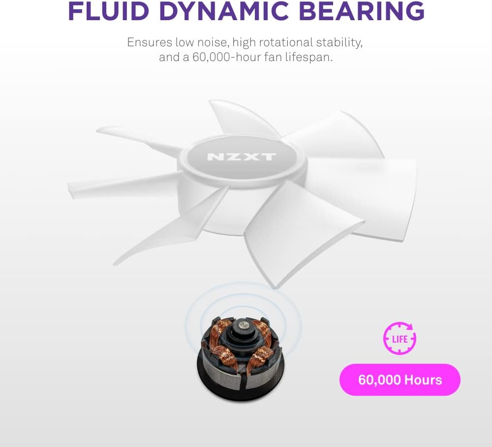 NZXT F140 RGB Core is a twin pack white color design cabinet fan having 2 x 140mm Hub-Mounted RGB Fans with RGB Controller. Fluid Dynamic Bearings deliver high rotational stability while reducing bearing noise and increasing fan lifespan up to 60,000 hour