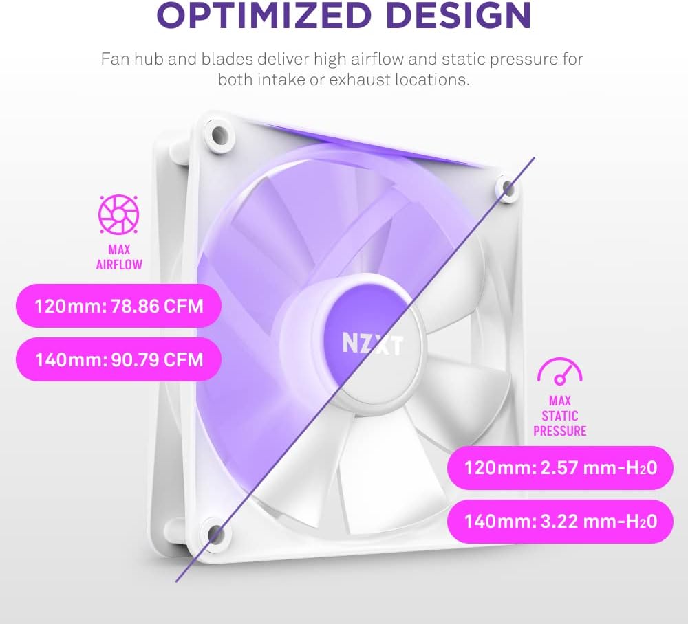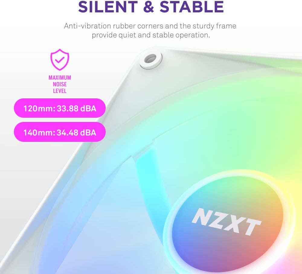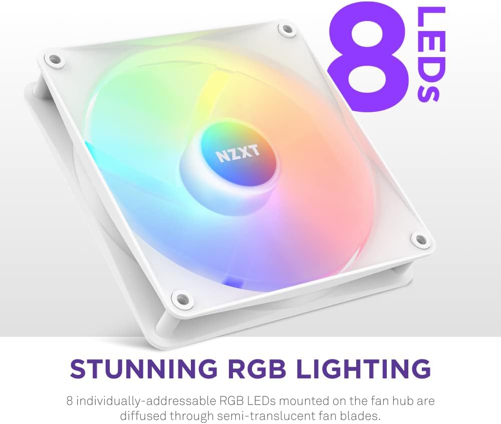 NZXT F140 RGB Core Twin Pack – 2 x 140mm Hub-Mounted RGB Fans with RGB Controller – 8 Individually-Addressable LEDs – Semi-Translucent Blades – High Static Pressure & Airflow – CAM Software – White