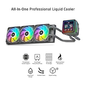 - Class Leading Pump and Radiator FAN Specifications 2700 RPM Pump, which rivals the performance of the latest Gen Pumps, with 2200 RPM, Non-RGB, 120mm FANs with 73.53 CFM Airflow and 4.5 mmH2O of Static Pressure, delivers class-leading cooling performance. Unmatched Cooling Potential – Support for Intel & AMD Desktop and HEDT CPUs : Get maximum cooling for LGA1851/LGA1700/LGA1200/LGA115X/LGA1366, AM5/AM4/AM3+/AM3/AM2+/AM2/AM1/FM2+/FM2/FM1 and TR4/SP3/sTRX4/sWRX8 sockets.