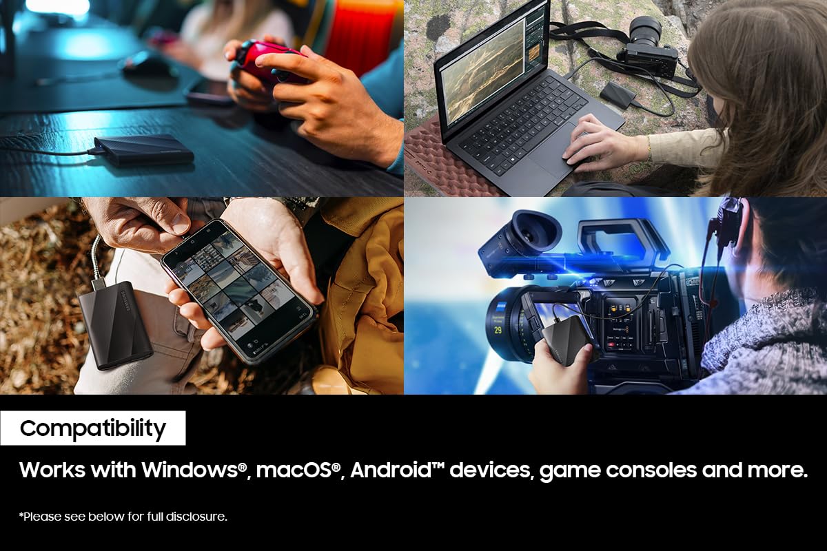 - EXTENSIVE COMPATIBILITY: Whether you’re using a desktop, camera or a gaming console***, count on the T9 Portable SSD for extensive compatibility; It’s a true team player when it comes to heavy-duty application usage or file-saving